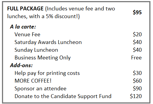 - The agenda and schedule for the weekend: Convention Schedule (Coming soon).